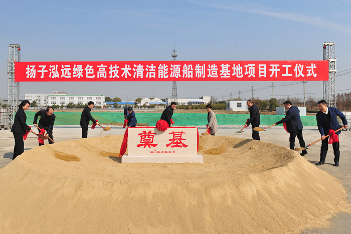2月19日,揚子泓遠綠色高技術(shù)清潔能源船制造基地項目(以下簡(jiǎn)稱(chēng)“揚子泓遠項目”)舉行奠基儀式,正式開(kāi)工建設。靖江市委副書(shū)記、市政府市長(cháng)申強主持儀式并致辭,我集團董事長(cháng)、總經(jīng)理任樂(lè )天現場(chǎng)致辭。泰州市委書(shū)記姜冬冬宣布項目開(kāi)工。泰州市委副書(shū)記、市長(cháng)萬(wàn)聞華,市委常委、常務(wù)副市長(cháng)沈峻峰,市政府秘書(shū)長(cháng)包亞,靖江市政府、人大、政協(xié)主要負責同志出席儀式,并為揚子泓遠綠色高技術(shù)清潔能源船制造基地項目培土奠基。