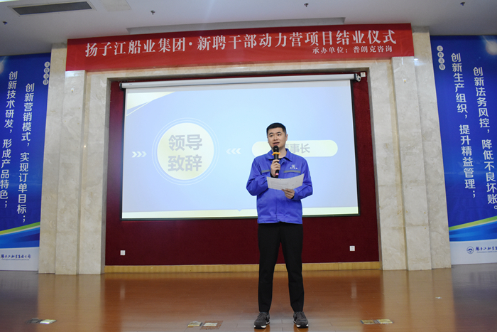 Ren Letian, chairman of the group, presented the certificate for the trainees. He congratulated all 49 trainees on their successful graduation, and pointed out that the trainees of this training course are the mainstays of YZJ in the future. Through half a year's systematic study, we have seen that everyone can use the learned knowledge to arm themselves and to assume their responsibilities  and communicate effectively internally to achieve the purpose of the company to hold this training course. Chairman Ren  affirmed the efforts of the trainees, and at the same time put forward higher requirements for the newly recruited cadres. The management cadres should have both ability and political integrity, first of all, the cultivation of morality, then the promotion of talents, and be fair, just and open in daily life and work. In management, we should dare to take on the big responsibility, dare to take the lead, and influence our team with our own positive energy.