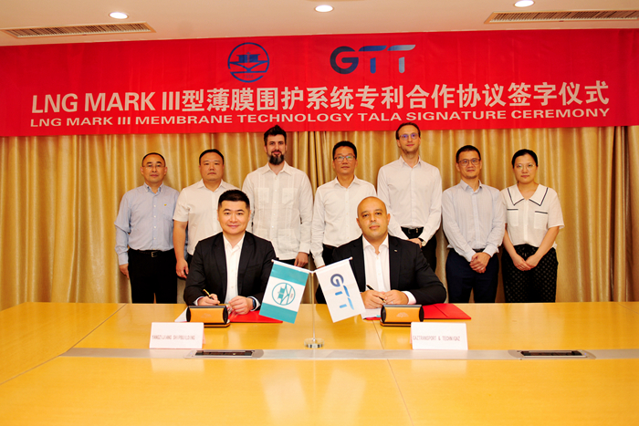 On September 8th,Yangzijiang Shipbuilding Group and GTT (Gaztransport& Technigaz) of France hassigned a technical assistance and license agreement on Mark III membrane containment technology forthe LNG fuel tanks. Annan Issaoni, General Manager of GTT China, Ren Letian,chairman of our group, attended the signing ceremony and conduct in-depthfriendly exchanges. This marks that our Group has officially obtained thequalification certification of GTT, and has the qualification to build largeLNG carrier with GTT Mark-III membrane enclosure system. As a result, our groupbecame the first private shipbuilding enterprise in China shipbuilding industryto obtain this qualification.