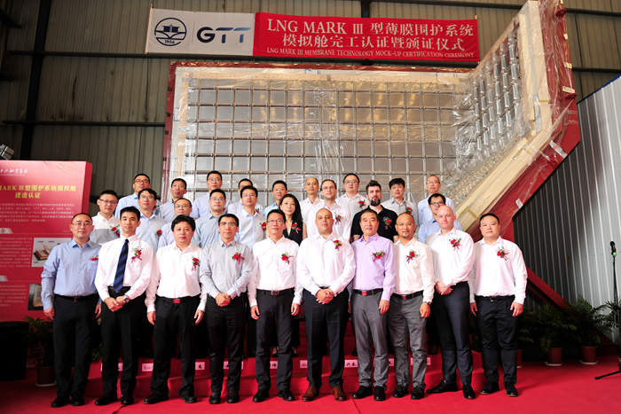 GTT Mark-III LNG shipmembrane enclosure simulation module qualification process completed and licenseaward ceremony was held in Yangzi Xinfu. Annan Issaoni, General Manager of GTTChina, Song Aimin, General Manager of ABS Classification Society Central China,Christophe VAES, Manager of BV Classification Society New Shipbuilding Division,Cai Gao, Director of CCS Jiangyin Office, Huang Jin, Global Senior VicePresident of DNV Classification Society, Shi Xingtai, General Manager of LRGreater China and Masakatsu TSURU, General Manager of NK Shanghai Branchattended the ceremony. Yang Xueyan, General Manager of Yangzi XinfuShipbuilding Co., Ltd., received the qualification certificate from AnnanIssaoni, General Manager of GTT China on behalf of the company. Zhou Kewei, DeputyGeneral Manager of our group, received the qualification certificates issued byABS, BV, CCS, DNV, LR and NK classification societies on behalf of our company.